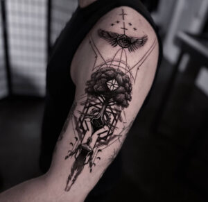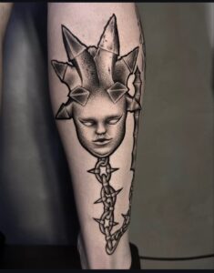 Tatér: Mono – najdeš ho v sekci Tatéři. Jeho práce je jako vizuální manifest – temný, odvážný a hluboce zakořeněný ve významu i estetice.