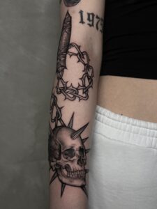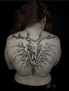 Temný styl je surový, drsný a silně emocionální. Motivy jako lebky, démoni, ruiny, zbraně nebo symbolika bolesti se spojují s výrazným typografickým stylem. Tento styl je perfektní pro lidi, kteří chtějí vyjádřit vnitřní boje, sílu či vzpouru. Kombinace dark motivů s ručně psanými nápisy vytváří originální a silné vizuály.