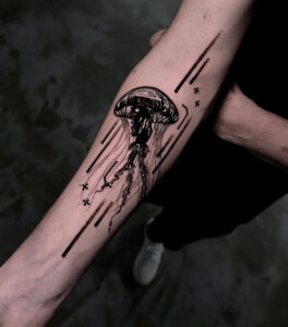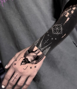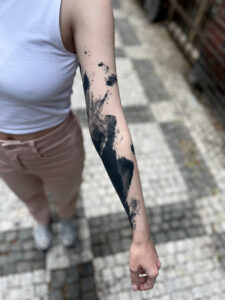 Tatérka: Mariia – najdeš ji v sekci Tatéři. Její grafické tetování je jako precizní kresba, která kombinuje umění s osobním příběhem – moderní, elegantní a nezaměnitelné.