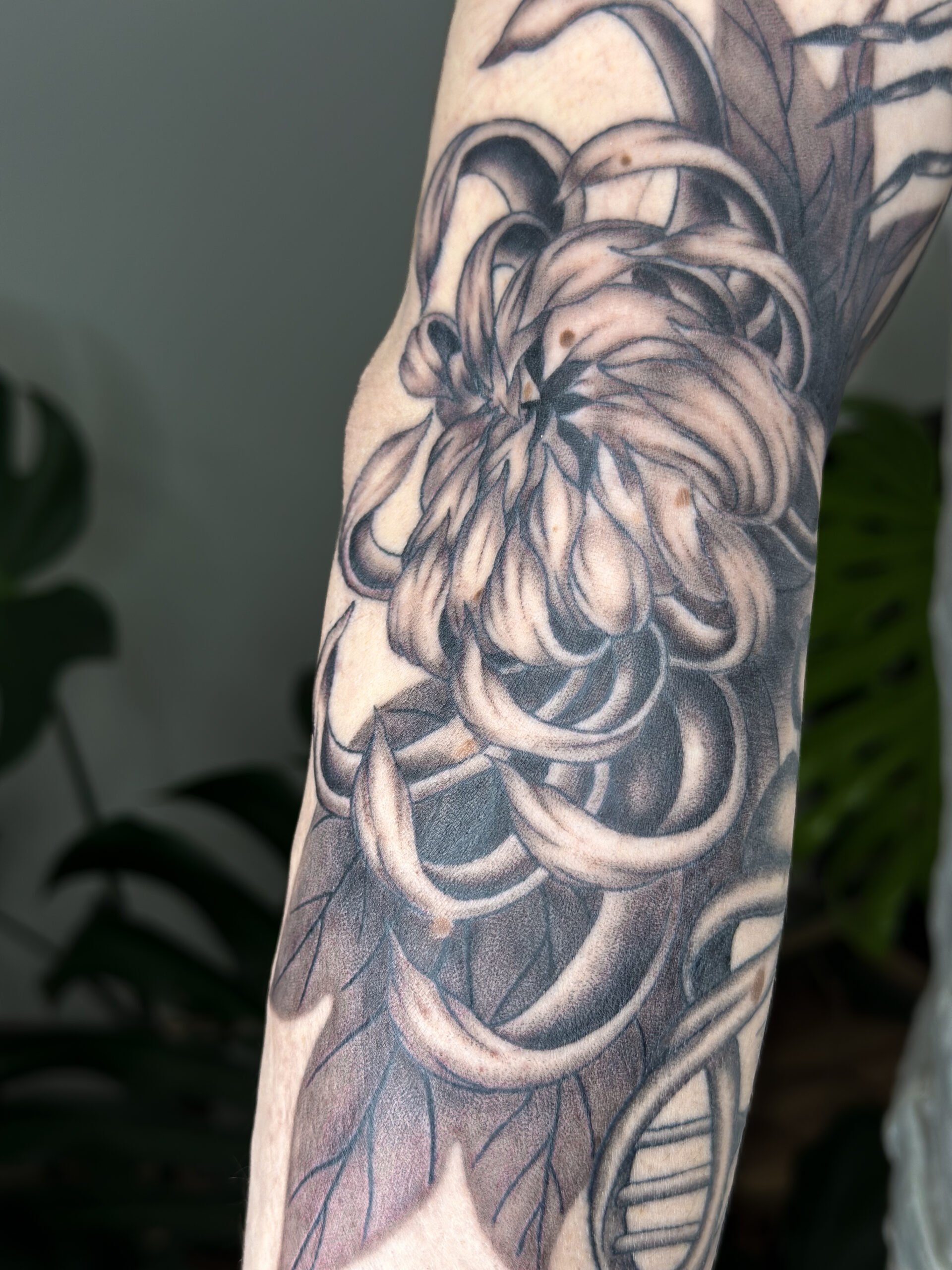 Pracuji převážně v černé a šedé — kombinuji jemnou grafiku, mikro a makro realismus, abstraktní prvky a symboliku. Ráda propojuji různé styly a vytvářím designy, které rezonují s příběhem člověka a jeho představami.