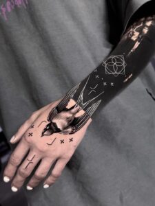 Na Instagramu mě najdete jako michaldokožepichal a tetování se věnuji už 8 let. Specializuji se na blackwork s precizními liniemi a jemným dotworkem. Každé tetování je unikát, který odráží vás i mou temnou estetiku. Když zrovna netetuju, věnuju se Muay Thai, dlouhým procházkám a hudbě, která mě inspiruje.