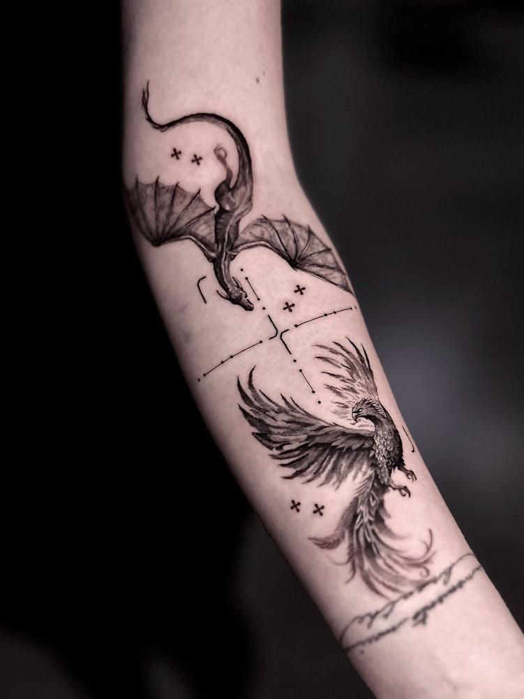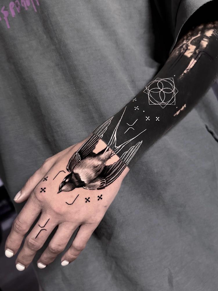Každé tetování je příběh, a já ho s vámi tvořím od první konzultace až po poslední linku. Kombinuji prvky realismu, ilustrace, minimalismu a design přizpůsobuji přirozenému tvaru těla. Mé tetování je jako šitý oblek – personalizované a jedinečné, přesně pro vás.